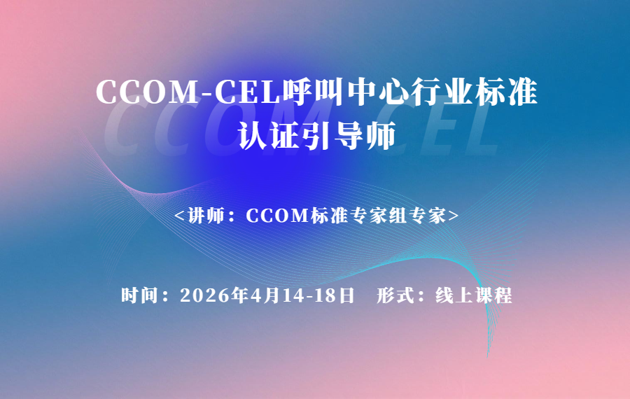 CCOM 认证“Certified Executive Leader(CEL)”引导师是企业在认证 CCOM 标准过程中的重要人员,需要掌握 CCOM 标准的精神和内容,能够实施认证项目管理,推广并倡导 CCOM 标准的贯彻执行责任,为培养企业内部精通 CCOM 标准的管理人才和骨干,帮助企业顺利通过企业认证。因此,CCOM 认证(CEL)引导师课程为了帮助学员全面掌握 CCOM 标准和认证要求,了解 CCOM 认证引导师的职责和任务,提高学员的项目管理和推广能力,培养符合 CCOM 认证(CEL)引导师职业标准的人才。通过 CCOM认证(CEL)引导师课程的学习,学员能够为企业提供支持和帮助,帮助企业顺利通过 CCOM 认证,推动企业与呼叫中心行业的规范发展。